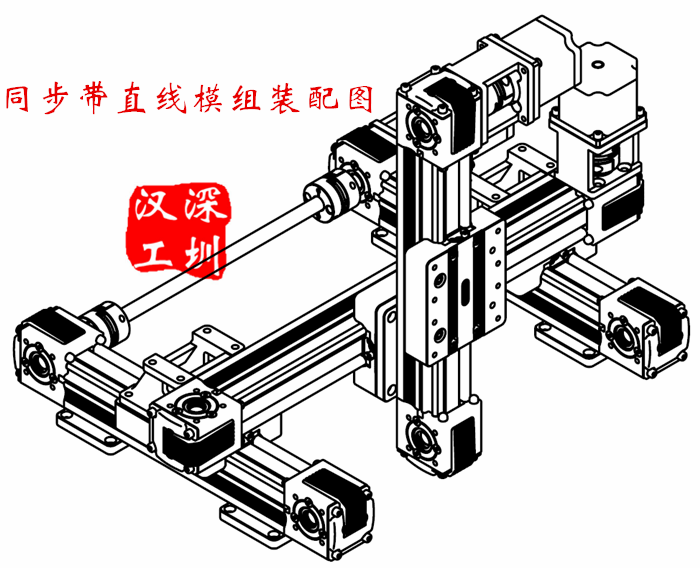 同步帶直線模組是以皮帶為傳動方式的直線模組,同步帶安裝在直線模組兩側的傳動軸上,其中作為動力輸入軸,在同步帶上固定一塊用于增設設備工件的滑塊。當有動力輸入時,通過帶動同步帶而使滑塊直線運動。